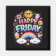 A cheerful, colorful celebration of joy and positivity featuring smiling suns, rainbows, treats, and playful icons to welcome the happiest day of the week.