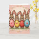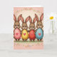 Designed with four friendly, long-eared animals standing shoulder to shoulder, this illustration shows them in soft brown fur with bright blue eyes and open smiles that feel like shared laughter between close friends 🐰. Each one hugs a large smooth oval in front of their chest, held close as if offering it to someone they care about. The ovals are colored pastel pink, sunny yellow, warm red, and light blue, each with a centered red heart that adds a gentle romantic touch. Light shading along the curves gives the ovals a rounded, glossy look, while the animals’ faces have soft highlights that make their expressions feel tender and welcoming. Behind them, the background fades from blush pink at the top into a creamy ivory glow, keeping the scene airy and springlike 🌷. Curving floral garlands frame the scene along the top and bottom edges, made of thin vines with small blossoms and green leaves. There is no large headline, and the open space near the top center leaves room for a short greeting in a simple color like deep red or soft brown. Along the bottom, a faint textured green strip suggests grass beneath their feet, with the garland looping just above it.