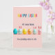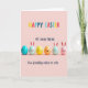 This design shows a blush-pink background with six egg-shaped characters lined up in a neat row, like friends posing close together 🐰. Each figure is a different pastel color, including turquoise, mint, yellow, orange, and rosy pink, with a shiny highlight that makes them look slightly rounded. A few wear simple bunny-ear shapes that rise above their heads, edged in a soft rosy outline 🐇. Their faces are drawn with small, varied expressions—gentle smiles, a wink, and an open grin—so it feels like they’re sharing a private joke. Several have rosy cheeks, and the way they lean and face toward one another adds a tender, friendly closeness. At the top, three lines of text sit centered above the characters, with the first line in multicolored letters and the next two lines in a darker, easy-to-read tone. The second line reads “MY DEAR FRIEND,” and the third line reads “Your friendship makes me smile,” while faint shadows sit directly beneath each character.