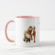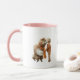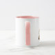 The image shows a white mug with a pink handle and pink interior. The mug features a design with two main elements: on one side, there is an illustration of a child and a dog standing close together, suggesting a moment of affection or friendship. On the other side, there is a cartoon depiction of a coffee cup with a smiling face and arms, accompanied by the text "HAPPY FRIENDSHIP DAY" and "BEST FRIENDS." This mug is interesting and relevant as it combines elements of friendship and positivity, making it a cheerful and heartwarming item for coffee or tea drinkers.