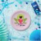 A happy green frog holds a pink polkadot heart on this Valentine themed kids' paper plate. Below the frog is stylized text that says "My HEART leaps for you". The image and text are placed on a light pink background. Perfect for any Valentine party for kids of any age! These plates match paper cups, napkins, and other Valentine party supply items in our store. *Clip art used in this design is copyrighted by Encore Software, Inc., which permits use to its licensors. All rights reserved.