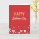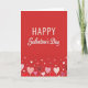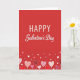 This greeting card features a solid red background that instantly feels warm and festive. Near the top center, the text reads “HAPPY Galentine’s Day” in white, with “HAPPY” in simple printed letters and “Galentine’s Day” in a flowing cursive style. Along the bottom edge, a row of heart shapes rises upward like a bunch of balloons. The hearts come in reds and many pink shades, from pale blush to deep fuchsia, and they’re mixed with different patterns like dots, stripes, and small floral prints. Smaller hearts float between the larger ones, giving the whole scene a light, happy motion. It feels like a sweet way to say “I’m glad you’re in my life,” whether you’re celebrating close friends or chosen family 🥰. The bright colors and cheerful hearts keep the message clear and easy to give with genuine affection ❤️. Hope it helps you share Valentine’s Day sentiments with someone you care about.