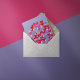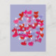 Watercolor hearts pattern in periwinkle and magenta. Bold Happy Galentine's day wishes postcard