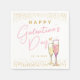 Happy Galentine's Day napkins for Valentine's day. With champagne flutes, a heart and gold glitter.