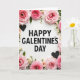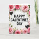 Designed with a bright white background, this card centers on the words “HAPPY GALENTINE’S DAY” in black, all-caps lettering. The text sits right in the middle and feels easy to read and confident without being too much. Around it is a border of soft pink roses, with layered petals that look full and gentle. Mixed in are small cream-white buds and a few peach, daisy-like flowers that add a little variety. Green leaves peek through the flowers here and there, keeping the frame feeling natural and fresh. Two simple black heart shapes sit in opposite corners, tying in with the black lettering and adding a sweet touch ❤️. It feels meaningful to give because it celebrates close friendship and caring in a way that’s warm, supportive, and easy to share 🥰.