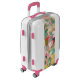 The luggage itself is awesome. So much utility for a carry-on bag. Lots of zippered pouch compartments to keep everything from getting everywhere. And it has a TSA approved lock and a dust cover! Love it. The printing is terrific. Love the way it wraps around the top and bottom. So happy the bumpers, wheels and handle color matches the design perfectly. She's gorgeous.