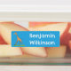 From the happy safari. This cute giraffe has a butterfly on his nose with a blue background.