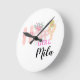 custom name pink happy girl cream cake round clock
