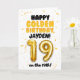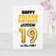 Celebrate your child turning 19 on the 19th, with this Happy Golden Birthday card! Designed in a bright and cheerful gold theme, this card features a fun, bold layout with confetti details and a large gold balloon number. Personalize it with a name on the front and the inside of the card to make their golden birthday extra special!