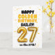 Celebrate turning 27 on the 27th, with this Happy Golden Birthday card! Designed in a bright and cheerful gold theme, this card features a fun, bold layout with confetti details and a large gold balloon number. Personalize it with a name on the front and the inside of the card to make their golden birthday extra special!