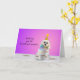 Party Hat Pup Greeting Card for Barkdays or Gotcha Days. Vibrant gradient lavender with Party Hat Pup with his bow tie and gold party hat.