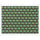 A table cloth with a repeating pattern. A cute illustration of a plump round cactus, with big kawaii eyes, smiling and wearing a red sombrero. Standing inside a flower pot. The background is a black chalkboard image.