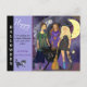 This postcard features 3 witches making a brew with trees , owl, and a moonlight in the background. You can update all text, please break some text into several lines so it fits the light purple area for the text. You can update the from to your or your family name or delete it.