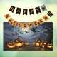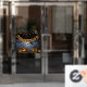 Happy Halloween Window Cling / Decal featuring bunting flags with text "Happy Halloween" and poster with flying witches, pumpkin lanterns.