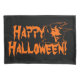 Happy Halloween black and orange pillow case. Scary home decor for bedroom. Full moon with witch on a broom, black cat and bats. Fun party accessories, decorations and supplies.