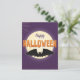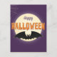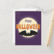 Cool happy halloween post card with black flying bat. Orange black and purple tones.