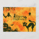 Happy Halloween Black cat, owl, pumpkins Postcard