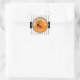 This square sticker design features a black Halloween cat on an orange and black label with the text 'Happy Halloween' in white. Background is a narrow black and white striped pattern. Personalise with your name or other text. Search ID686 to see other products with this design.