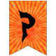 These Halloween party bunting flags say, "Happy Halloween!" in creepy black text on an orange ray background. On the flag between the words, there is a silhouette of the headless horseman on a horse and holding up a pumpkin head. Decorate your Halloween party with these bold bunting flags.