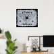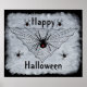 A black widow spider is sitting in her triangular spider web waiting for the next prey, surrounded by additional spiders. She has the famous red hour glass mark of a black widow. The background is a painted white texture on black. Image is my original drawing. All text is customizable with templates. See my store Art by MAR for matching products with this design.