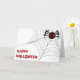 Happy Halloween Card with a black spider and big red fire eyes on a spider web. Don't forget you can customize this card any way you like!