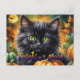 Happy Halloween Cat with pumpkin Holiday Postcard