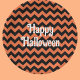 This black paper plate with orange and black chevron design has a Happy Halloween message for your party guests.