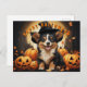 Happy Halloween Corgi In Pumpkin Patch Holiday Postcard
