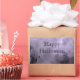 A spooky Halloween sky with misty trees along a dark haunted road, gothic ravens and a cloudy full moon with a deep violet tint. Click Customize It to change fonts, sizing and more, even save your design for later.
