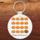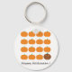 A cute patch of festive orange pumpkins are joined by a happy little holiday jack o' lantern at the end of the line. Happy Halloween!