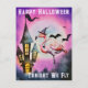 Happy Halloween Flamingo Bats Haunted Castle Postcard