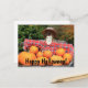 Perfect Halloween themed postcard to jot a quick not to a friend or family member or even use them for that special Halloween party invitation coming up. Includes happy flannel shirt wearing scarecrow among varying sizes of pumpkins waiting to be carved into that perfect jack o lantern.
