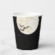 A starry night sky with a trio of bats silhouetted against a full moon. This design will work for adults or kids. The back of the cup reads "Happy Halloween". A paper cup for your next Halloween party. Matching paper plates and napkins are also available.