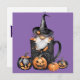 happy halloween card with gnome inside a spider mug