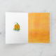 Happy Halloween greetings for a grandchild featuring a sweet mummy wrapped up tight holding a smiling Jack-O-Lantern and walking through a patch of ghost pumpkins on the night of the full moon hand drawn with ink and painted with watercolor. On the inside is a bright shade of orange watercolor and text you can edit to fit your needs.