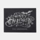 Wish your guests a "Happy Halloween" with our personalized Halloween doormat! The custom Halloween doormat features "Happy Halloween" in chalk lettering adorned with bats and spiders with a chalkboard background. Personalize the spooky doormat by adding your last name or custom text.