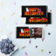 Fun Halloween Hershey's bars featuring a graphic with the words "Happy Halloween" and images of a mummy, spiders, spiderwebs and a witch's hat.