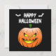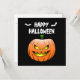 Happy Halloween Card with a pumpkin, bats and spider with a web.