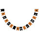 Decorate for Halloween with this fun, orange and black bunting flag. Perfect for those spooky, creepy Halloween parties or haunted houses!