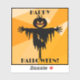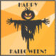These awesome Halloween stickers feature a jack o' lantern scarecrow in black silhouette, on a striking, geometric background in shades of orange.