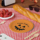 These Happy Halloween orange pumpkin face paper plates are perfect for your Halloween party!