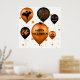 Happy Halloween illustration featuring party balloons in black and orange with a ghost, a witch, a spider and spider web and jack-o-lantern on a white background.