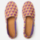 It’s been affectionately named Afridrille because it's inspired by the Spanish espadrille style, but it’s 100% made in Africa. The shoe retains the look and feel of the espadrille while weaving in the local African flair through unique custom designs, indigenous African patterns, and the kanga fabric (a colorful triangle garment worn throughout East Africa).