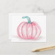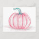 A Happy Halloween postcard in the "pinkoween" style for decorated with a whimsical pink pumpkin hand drawn in warm shades of pink colored pencil that you can customize with your own message.