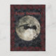 Happy Halloween Post Card with a bat flying across a full moon