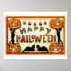 Classic vintage Halloween greeting card with pumpkins, black cats with yellow kerchiefs and apples.