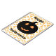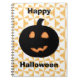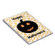 A smiling jack-o-lantern wishing a Happy Halloween sits atop a custom digitally designed pattern of streaming abstract pinwheel shapes.