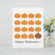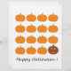 A cute patch of festive orange pumpkins are joined by a happy little holiday jack o' lantern at the end of the line. Happy Halloween!