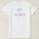 This Halloween t-shirt features a "Happy Halloween" graphic on the back, and a not so scary purple spider with spiderweb on the front. Keep, customize or delete the copy.
