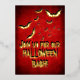 Happy Halloween red and black fog background with black and gold shadowed bats and Halloween message. All you need to do to this card is add your party information to the back. Message me for a custom order.